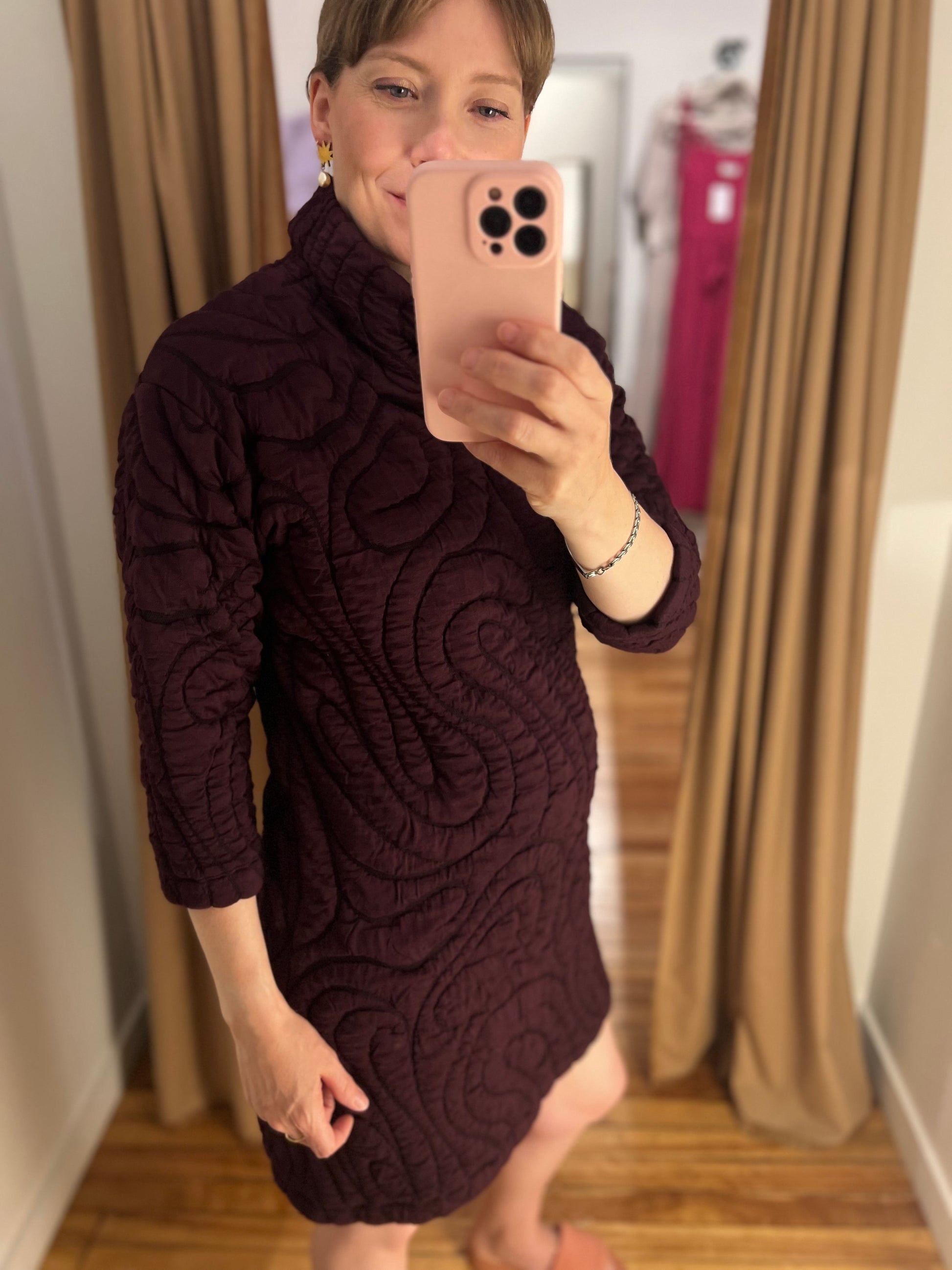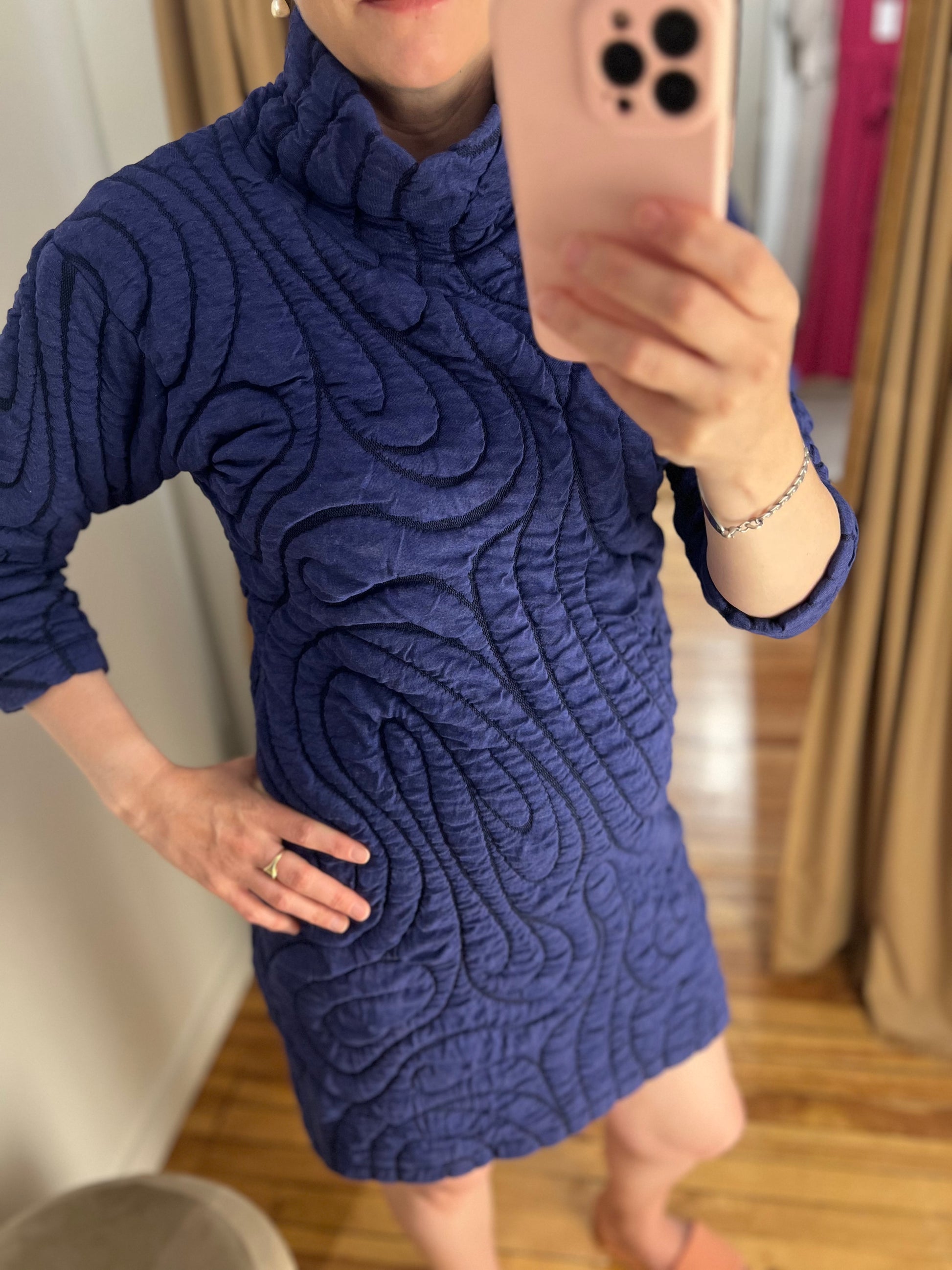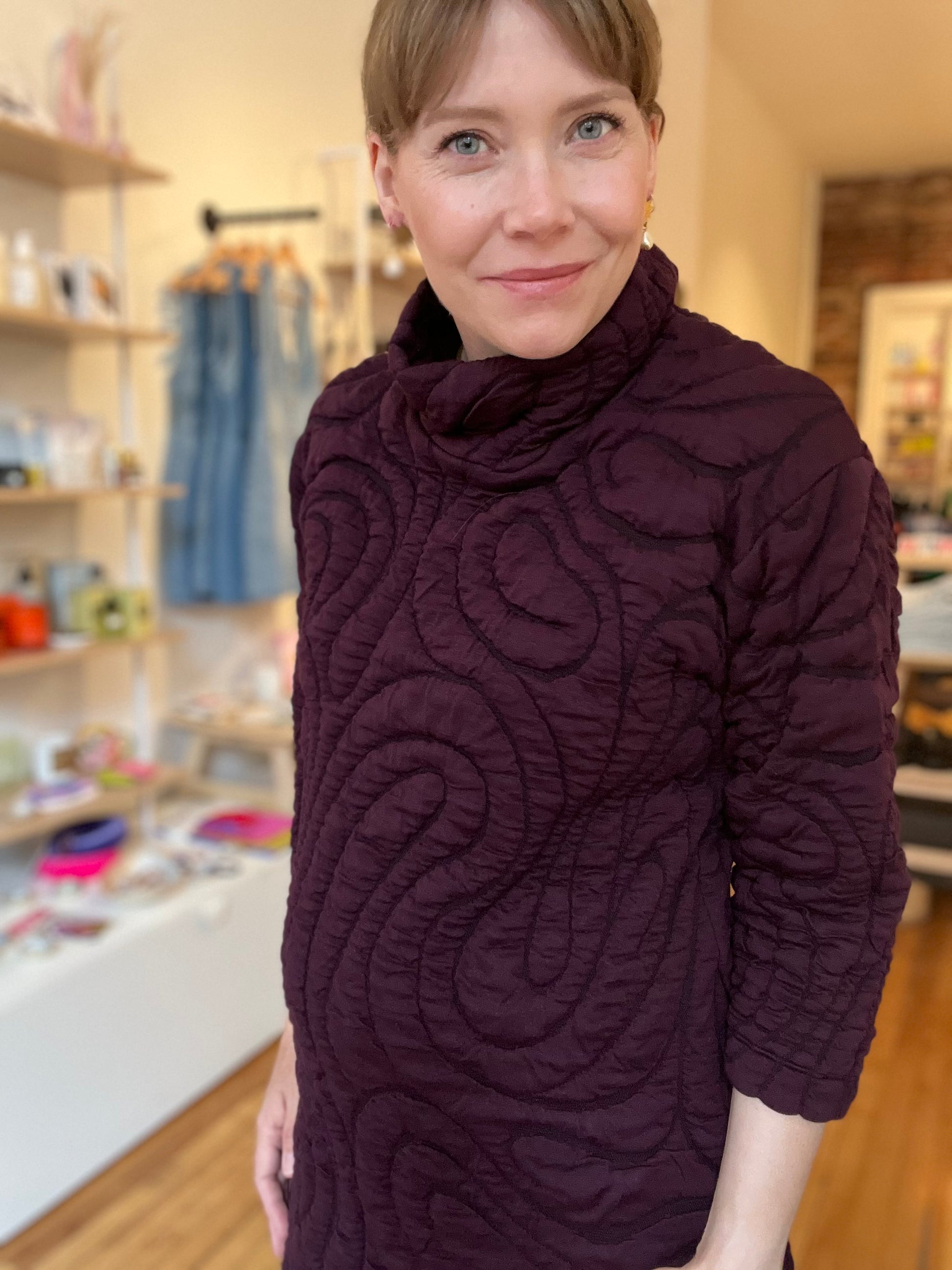 Are you in search of a one-of-a-kind dress? Say no more, for the Chiara dress is now available! Its distinct cut, unique collar and quilted-effect fabric make this piece a comfortable and original choice.