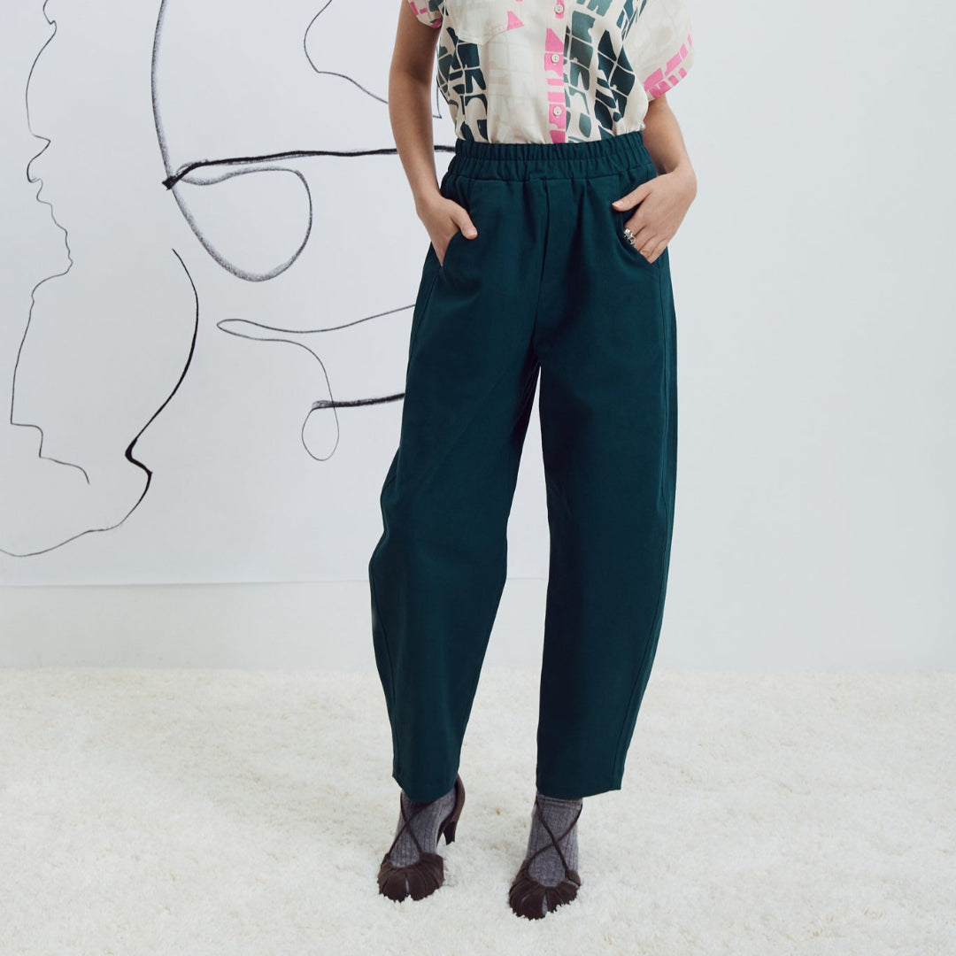 These baggy barrel-leg pants are the epitome of comfort. With their elasticated waistband, two side pockets, and back patch pockets, they combine practicality with casual style. A true essential that's so comfortable to wear, you'll find it hard to take them off!