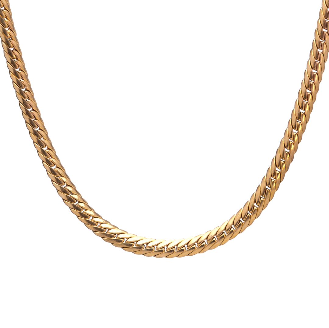 The Flat Olympia Necklace is perfect for layering and adding a bit of a boldness to your necklace stack. It features vintage brass chain that is half a century old, making it a timeless and classic choice. Enjoy the durability and quality of a chain made with craftsmanship from 50 years ago.