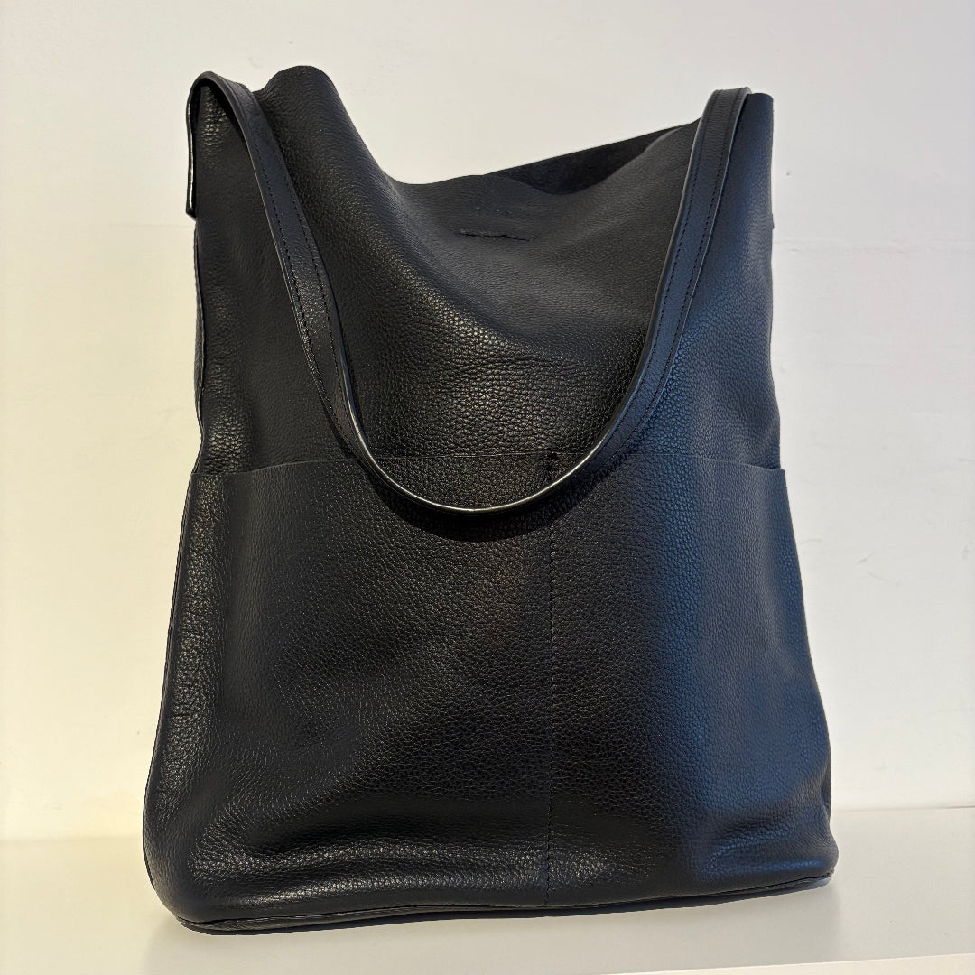 Risa, Leather Lila Pocket Tote, Black