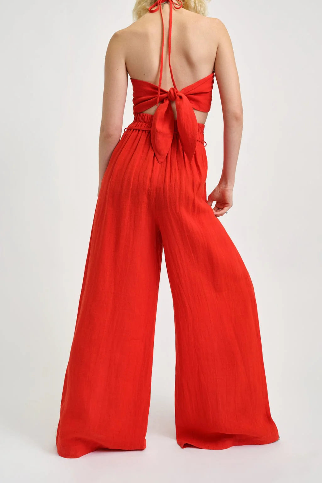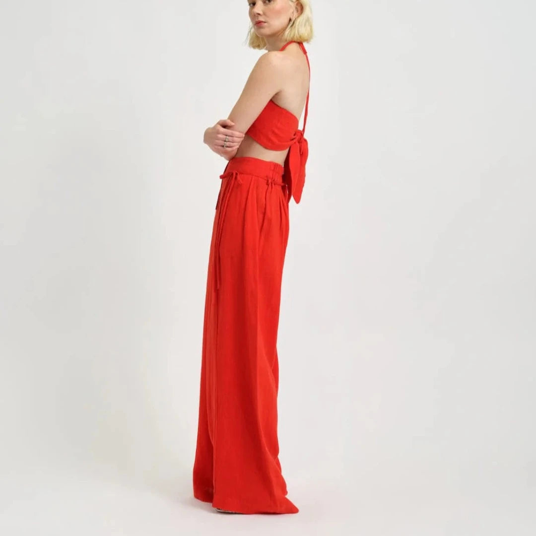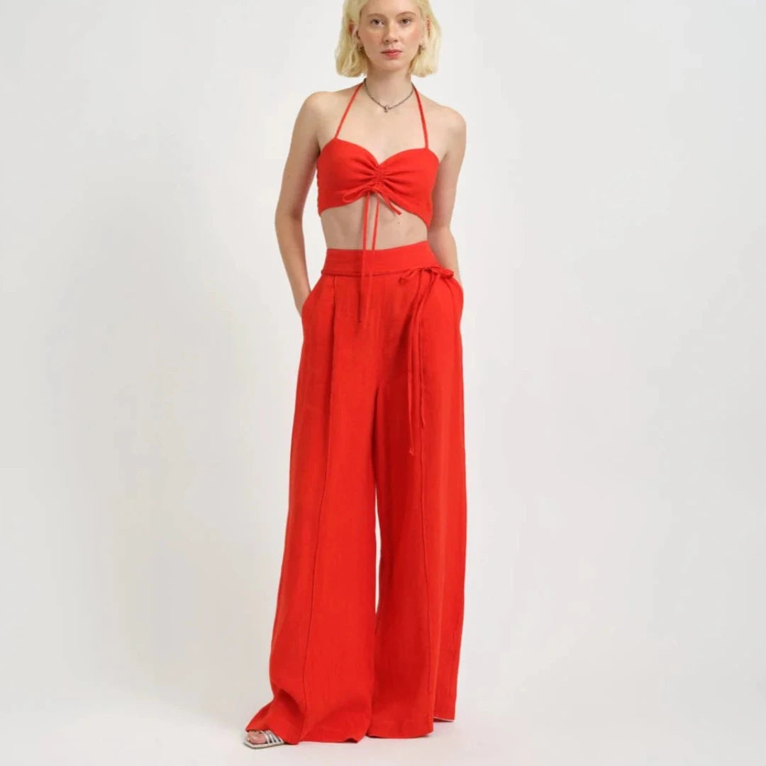 Introducing the Romy pant: the ultimate wide leg linen pant. Complete with pockets and a comfortable elastic waist, this pant even comes with a versatile attachable tie!