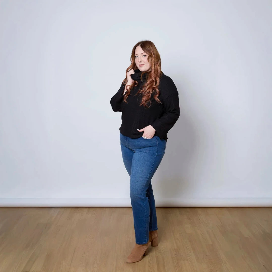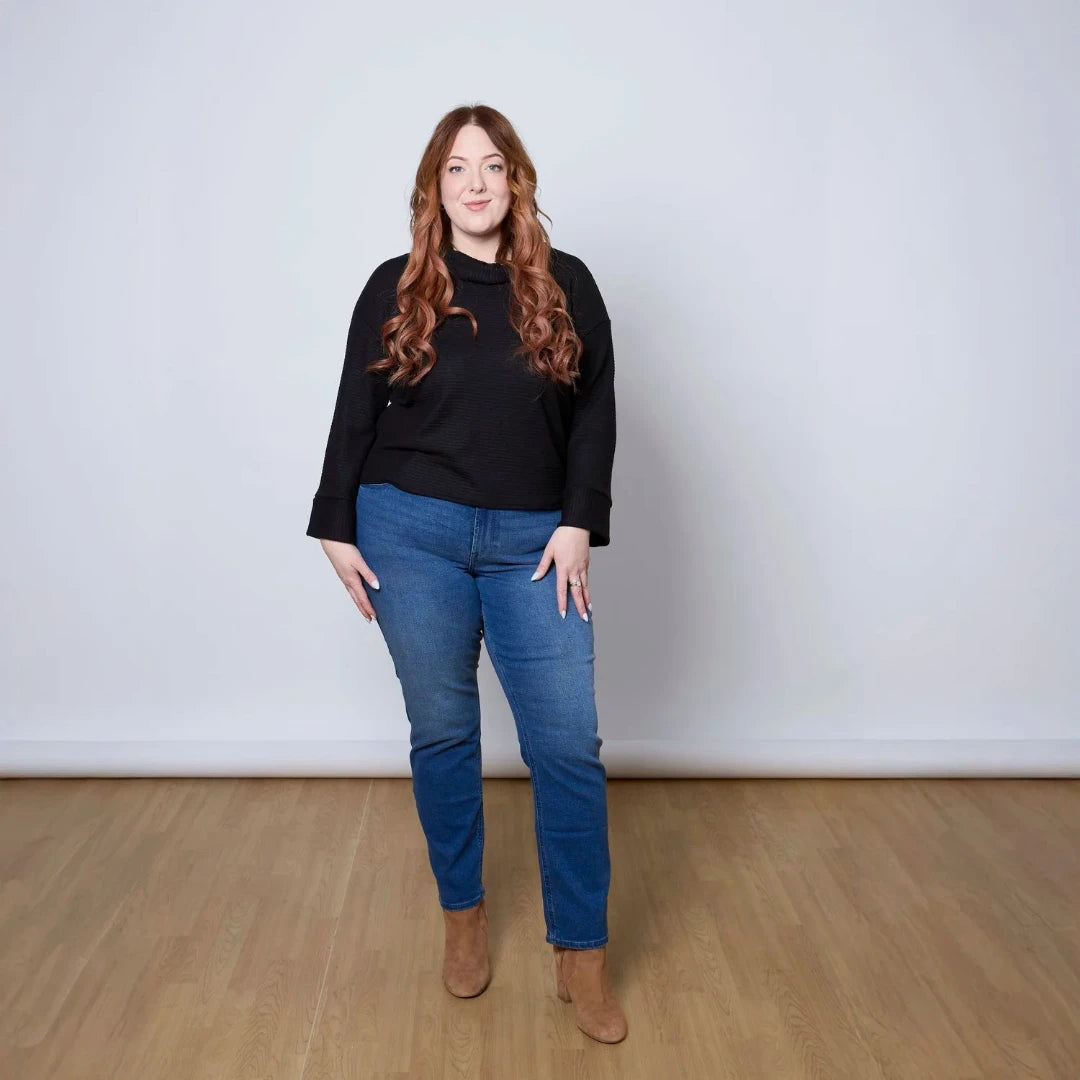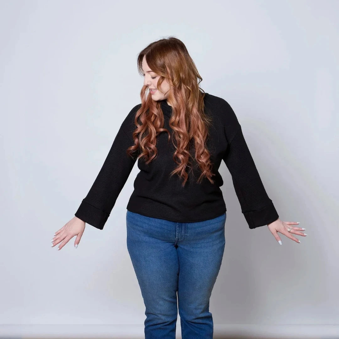 Long sleeve top in a thick ribbed fabric. A large cowl and cuffs make it extra cozy. More colours and stock coming later this fall.